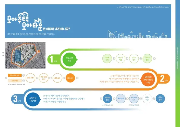 자치구에서 직접 모아타운 계획을 수립하거나 주민이 직접 계획 수립 제안을 통해 추진할 수 있습니다.