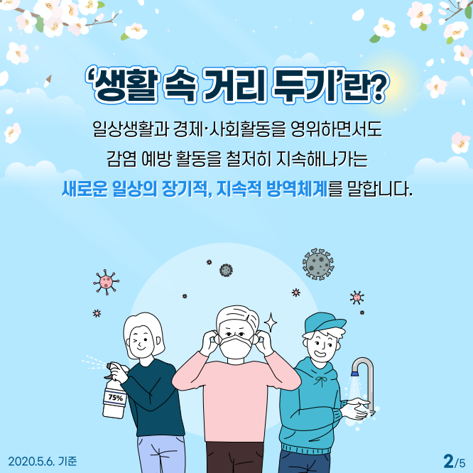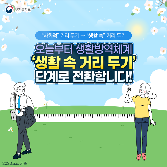 생활 방역체계 네 번째, 코로나 바이러스는 많은 분들이 이젠 아시겠지만 비말을 통해 전파됩니다. 그렇기 때문에 마스크를 꼭 써야 한다고 합니다. 오히려 이로인해 감기증상환자가 없다시피 하는데요. 사람과 사람 사이에 거리를 2m 이상 거리를 두는 경우 침방울이 튀는 위험이 현저하게 줄어드니 대화를 할 때는 더욱 조심스럽게 얘기하는 것이 매우 중요합니다.