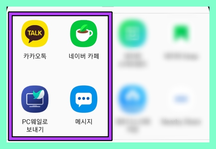 공유할 경우에는 저장하지 않고 바로 다른 사람에게 보낼 수 있습니다. 문자메세지나 개인SNS로 보내기 하세요.